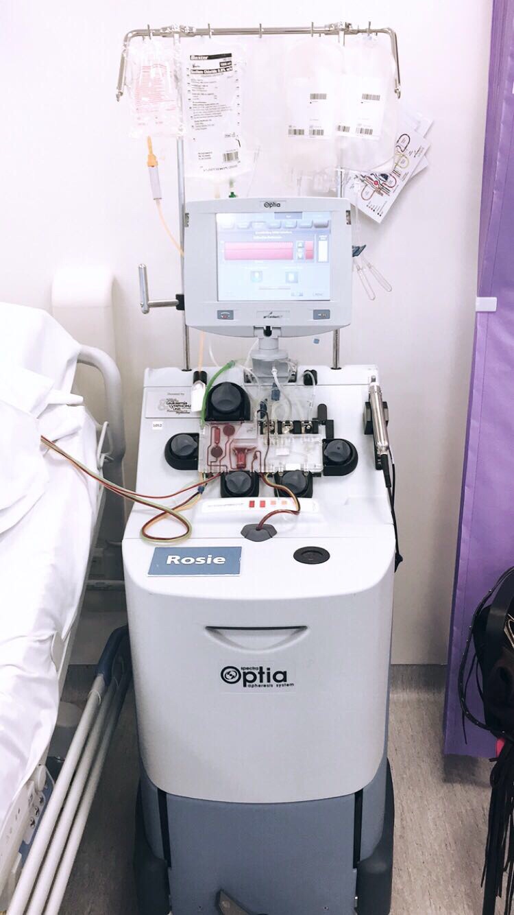 My stem cell collection was slightly delayed as my blood count wasn’t going up enough I was given an injection called ‘Plerixafor’ which is usually used as second line.. this injection is ridiculously expensive but it did the job, my body responded and I was told I was ready to have my stem cells collected.. I was so happy.. mainly because I wanted to have the vascular catheter removed!