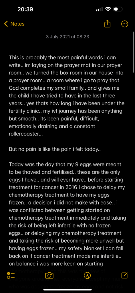 I don’t think I will feel well enough to open my blog once I start the chemotherapy.. I hope the next time I write a post its to tell you that I have pulled through!