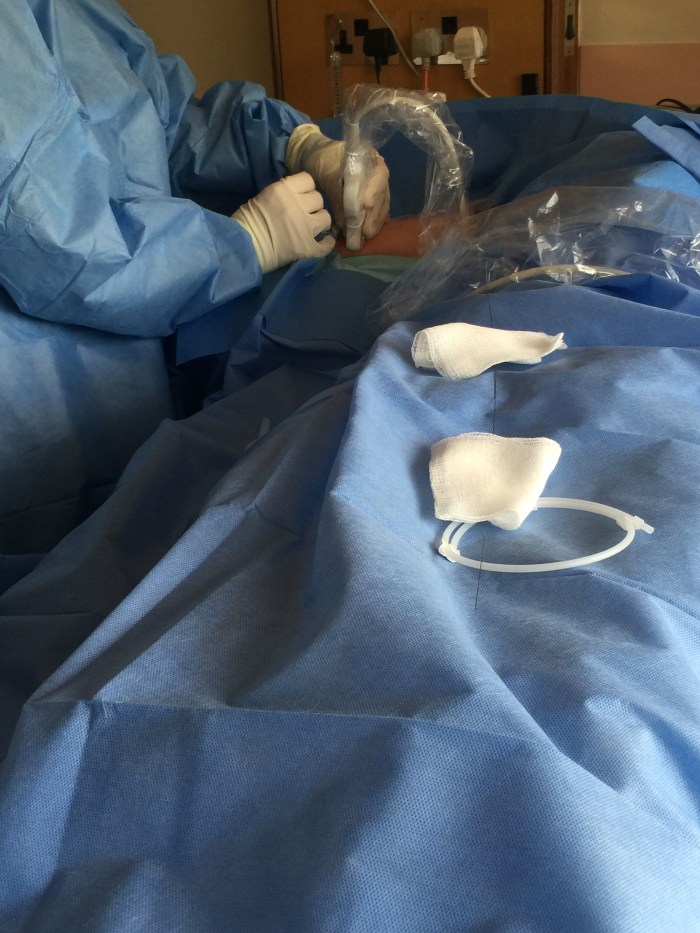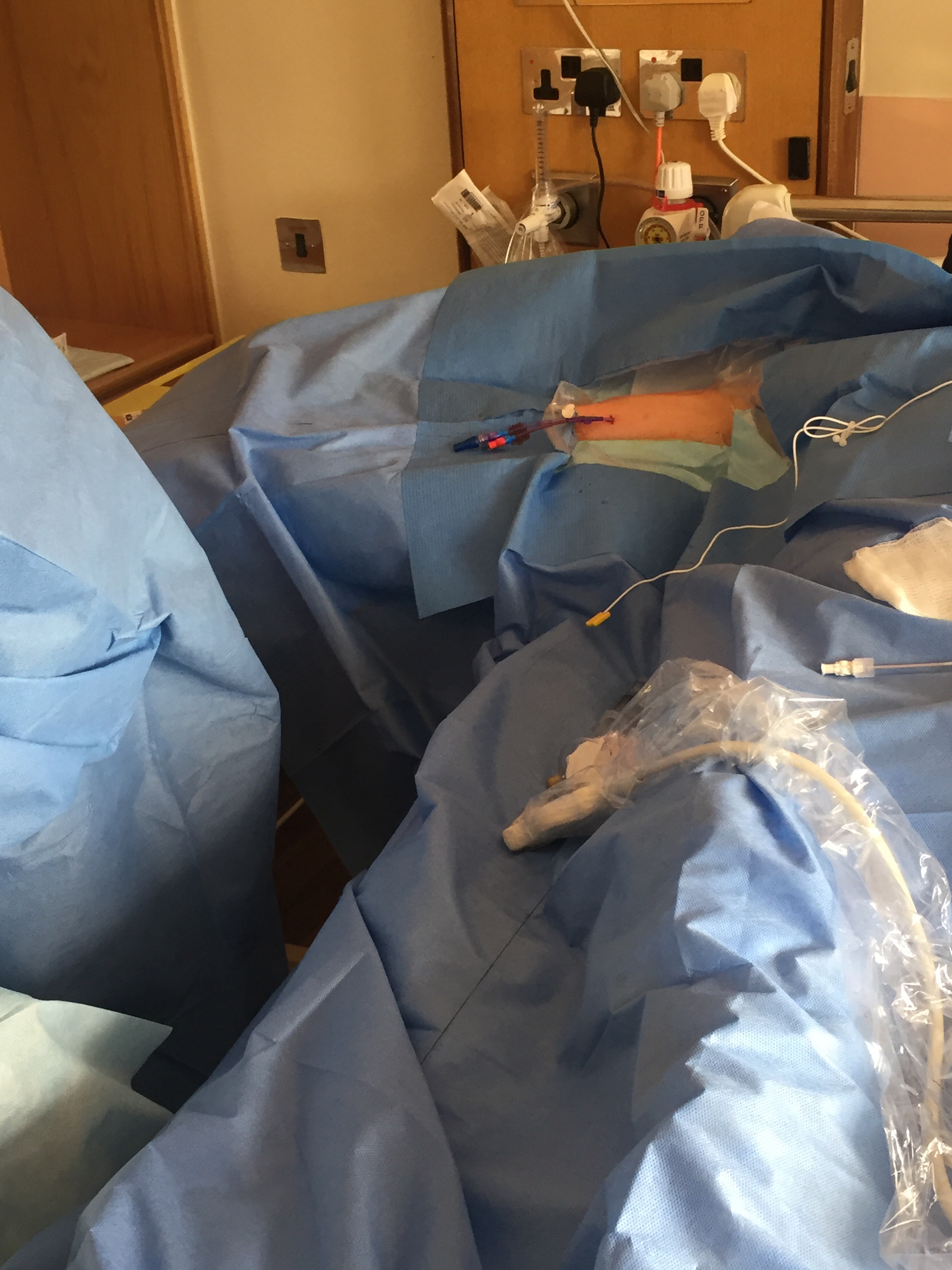So the PICC line was put in under local anaesthetic, the line was fed into my vein using ultrasound guidance. The procedure was done by one of the specialist nurses and took about 45 minutes – this is longer than usual as it took several attempts to get the tube in successfully.