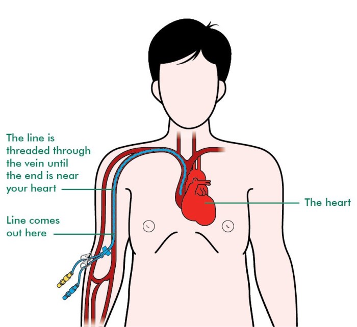 The image below showing a PICC line is from Macmillan.org.uk  (incase its copyrighted or something)
