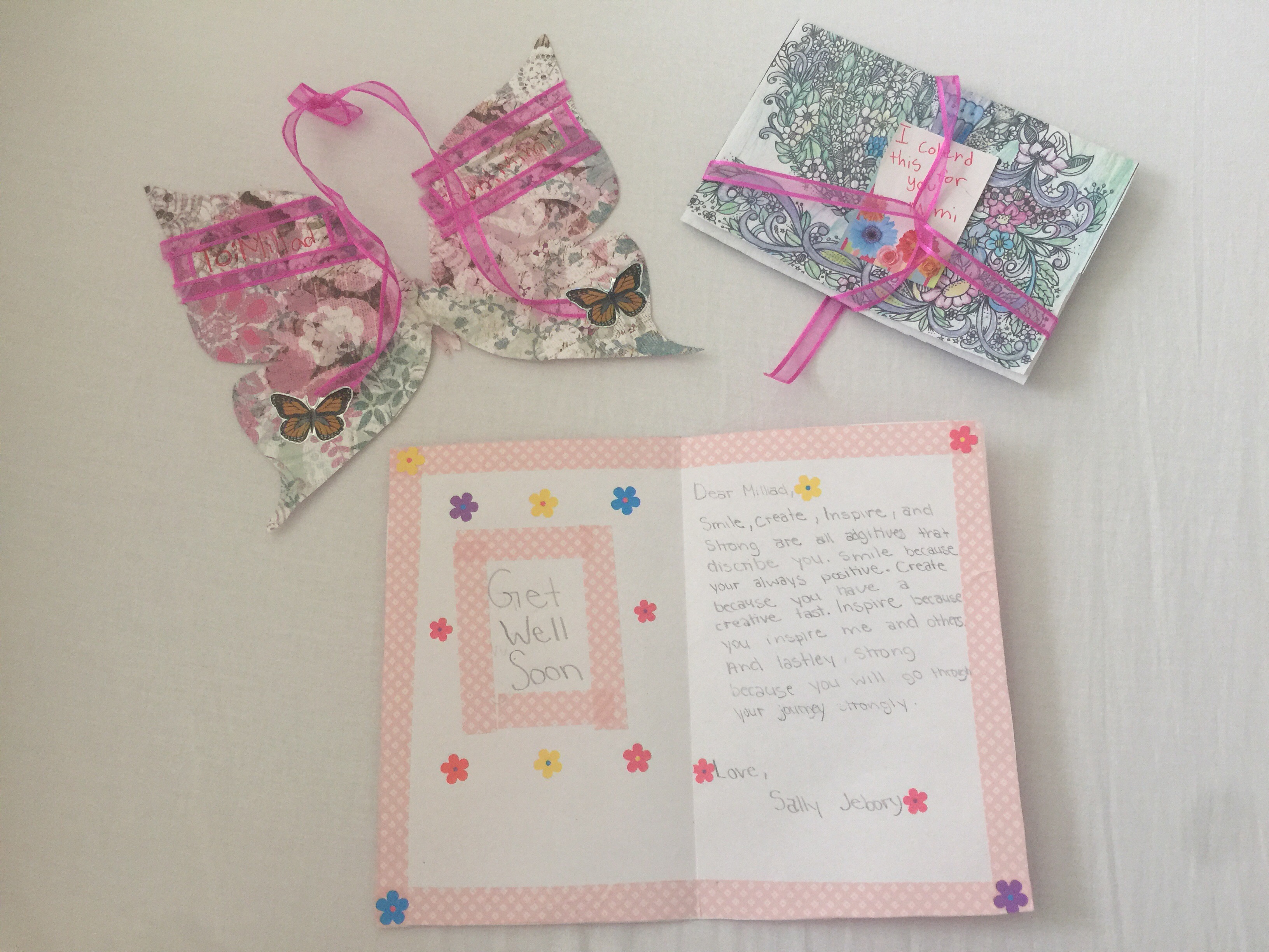 Today i received the cutest cards by post from my cousins daughters.. They live all the way in California.. How cute???? Now that cheers even the most miserable soul.. Thank you sally and mimi..